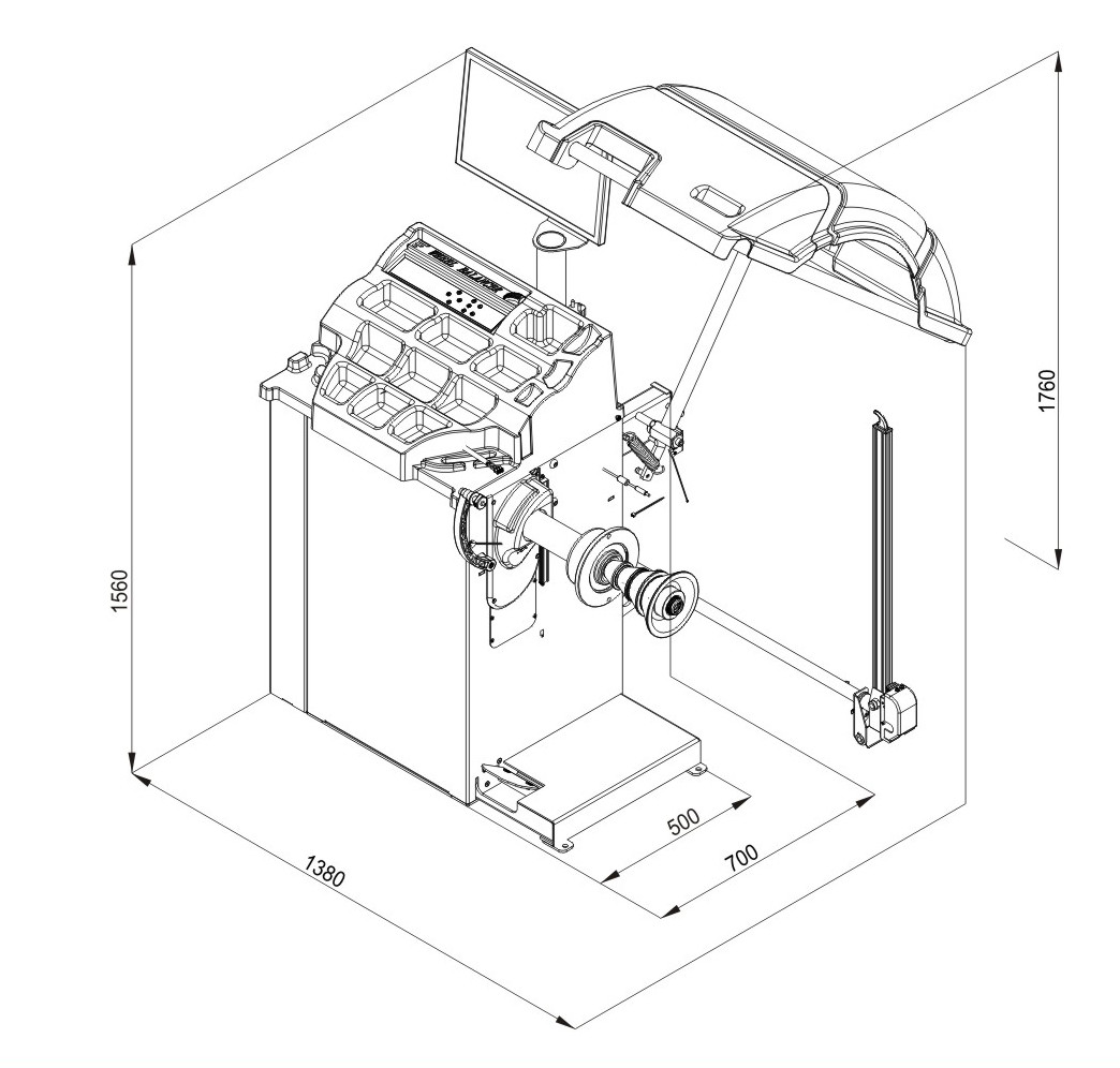 Especificación técnica del balanceador de rueda de WB-980 LCD:
